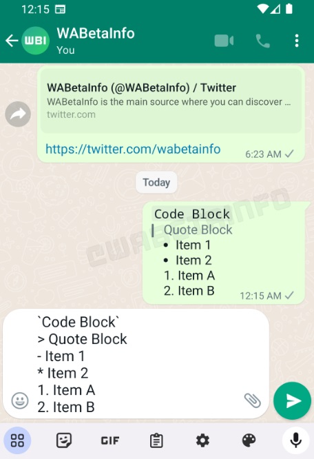 ووفقا لموقع wabetainfo المختص بكشف الميزات التجريبية في واتساب. يختبر التطبيق المملوك لشركة ميتا خيارات جديدة والتي من شأنها السماح للمستخدمين بتنسيق الرسائل النصية بشكل أفضل من السابق.